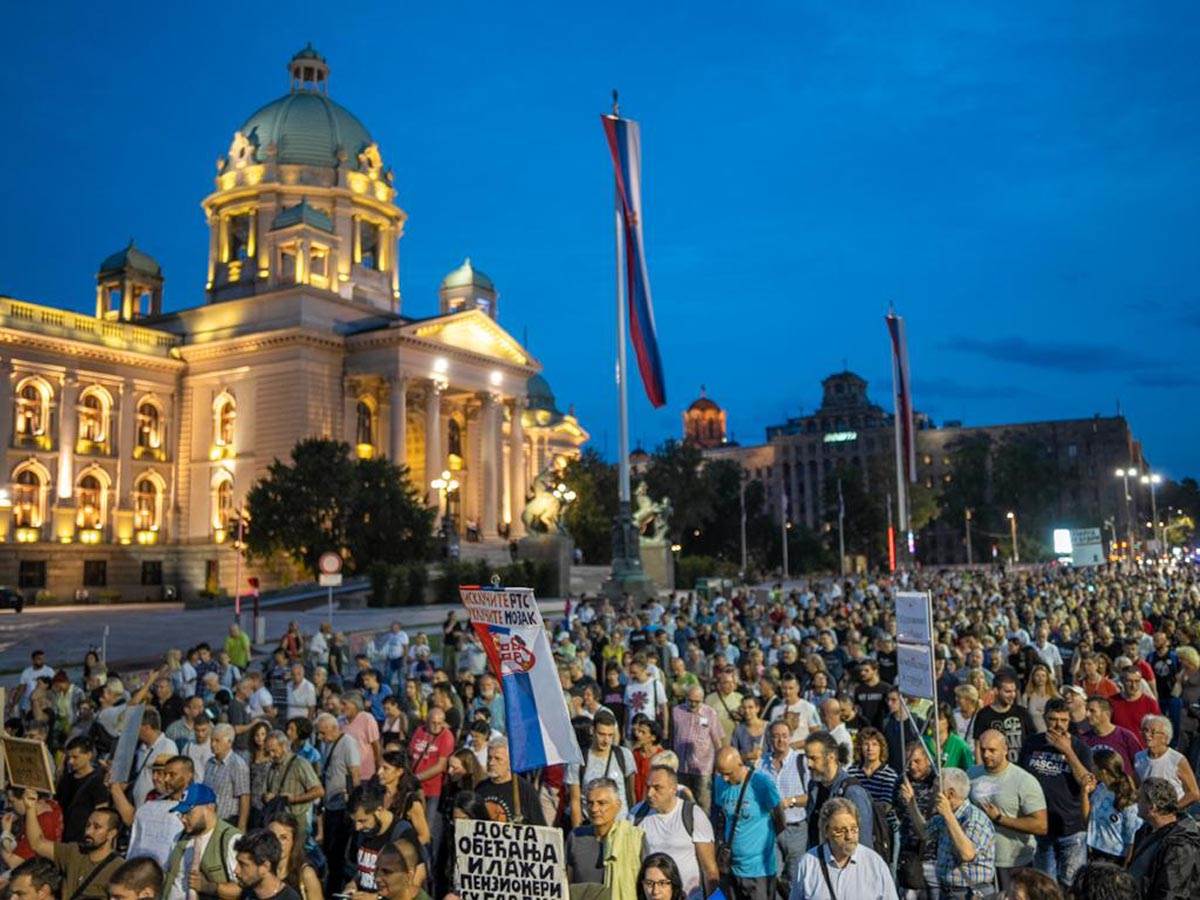 U subotu, 22. jula održan je 12. protest "Srbija protiv nasilja". Učesnici protesta okupili su se ispred Narodne skupštine, potom išli do Dečanske i Makedonske, zatim do Svetogorske i završili šetnju ispred Radio-televizije Srbije.